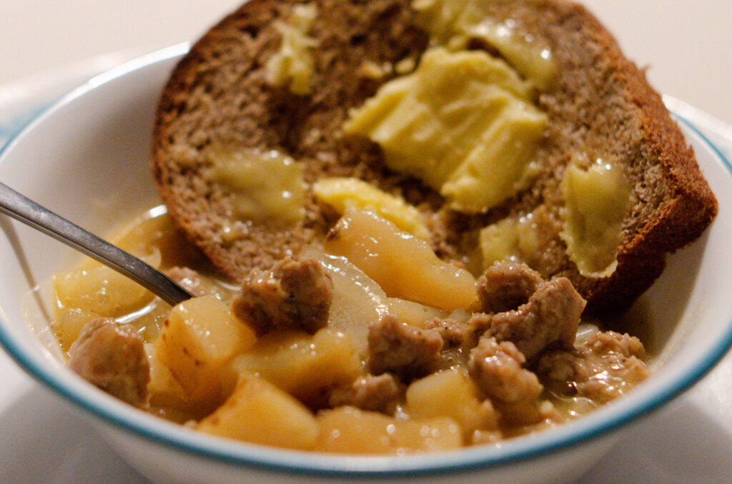 No Fuss Sausage + Potato soup from Canned Potatoes – 30 minute Recipe